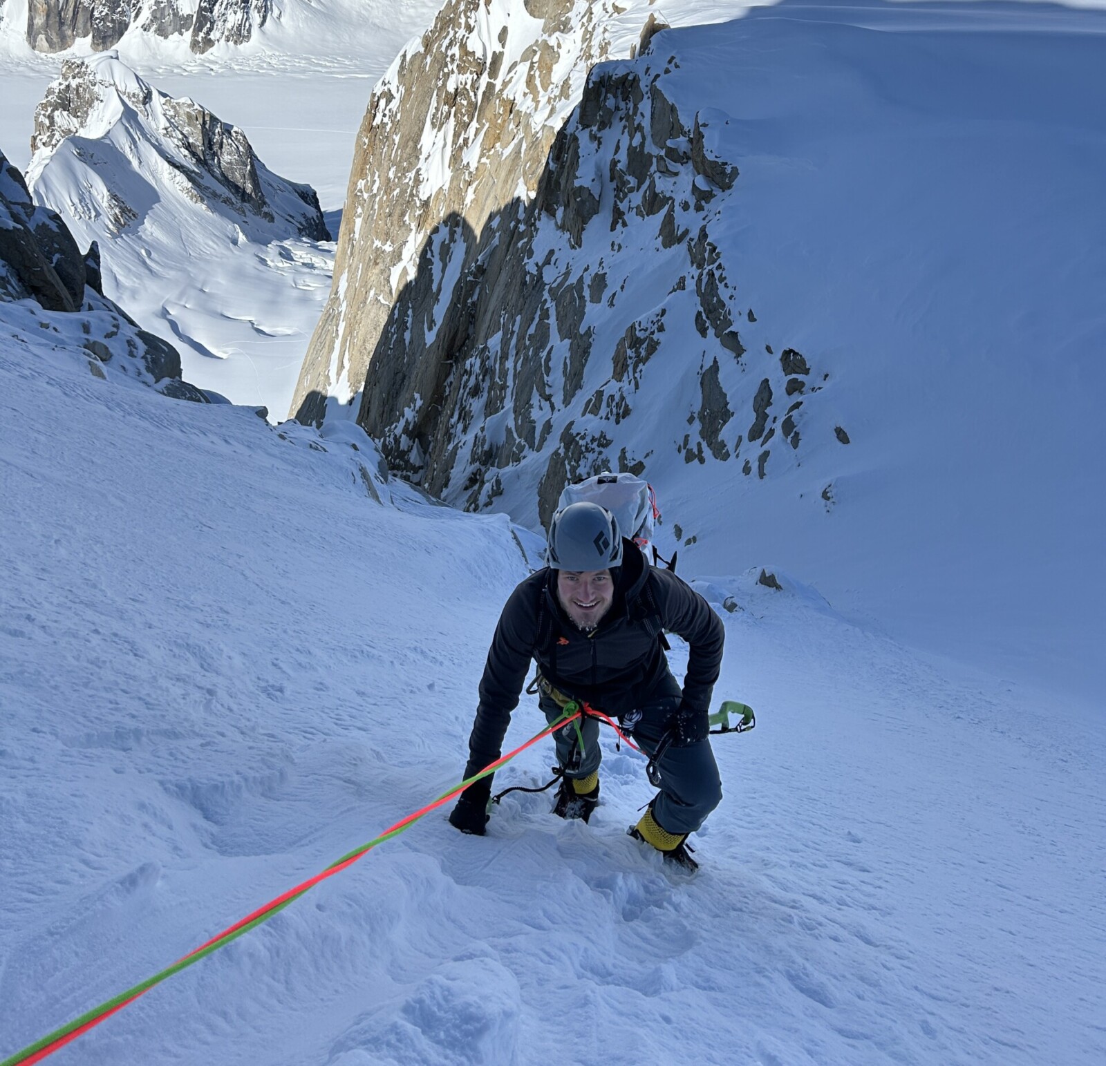 Ham and Eggs (V 5.9 AI4) on the Moose’s Tooth is a world-renowned alpine climbing objective. First climbed by Jon Krakauer, Thomas Davies, and Nate Zinsser in July 1975. Rising 3,000 feet from the glacier below, comprised of moderate difficulty steep snow, ice, and mixed terrain with one of the shortest approaches of any route in Denali National Park. This expedition combines fun non-committal alpine climbing and winter camping, all in a remote setting. However, convenient to the easily accessible Root Canal glacier and landing strip, making it an ideal first foray into Alaskan alpine climbing and a perfect pre-requisite for those looking to tackle a larger objective in the Ruth Gorge.